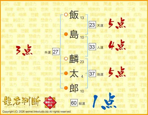 飯島麟太郎さんの地運は37画の5点!