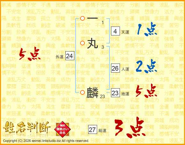 一丸麟さんの人運は26画の2点!