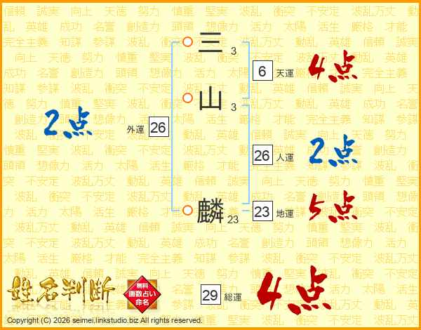 三山麟さんの総運は29画の4点!
