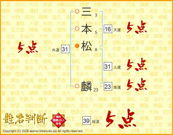 三本松麟さんの総運は39画の5点!