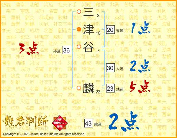 三津谷麟さんの総運は43画の2点!