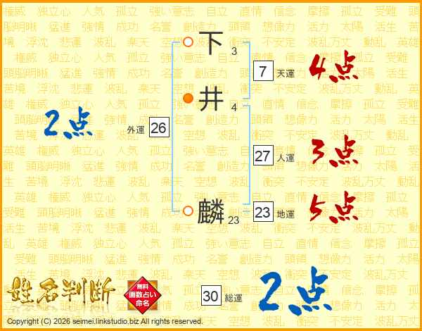 下井麟さんの総運は30画の2点!