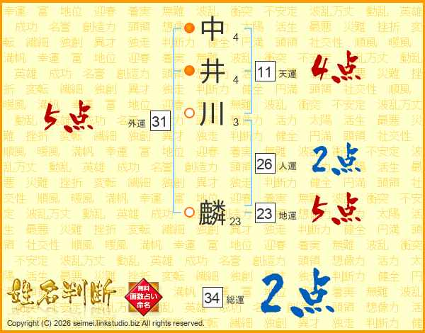 中井川麟さんの総運は34画の2点!