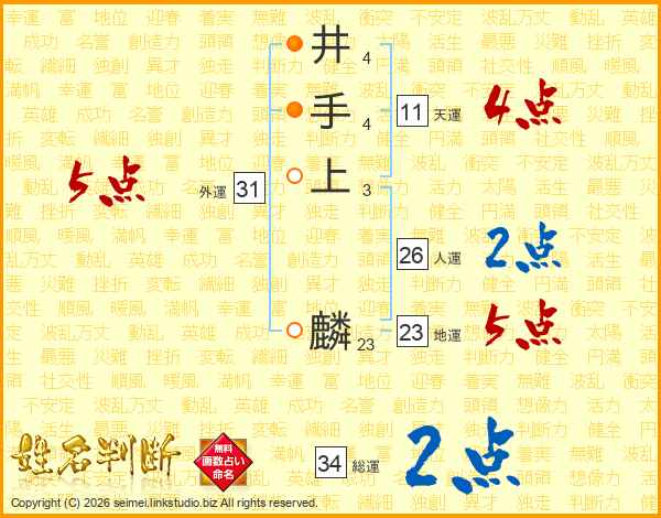 井手上麟さんの天運は11画の4点!