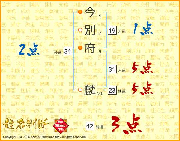 今別府麟さんの総運は42画の3点!