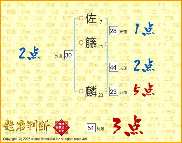 佐籐麟さんの総運は51画の3点!