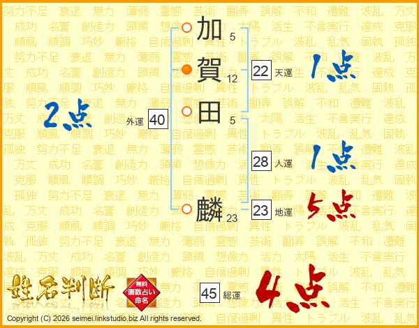 加賀田麟さんの総運は45画の4点!