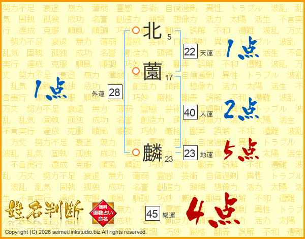 北薗麟さんの人運は40画の2点!