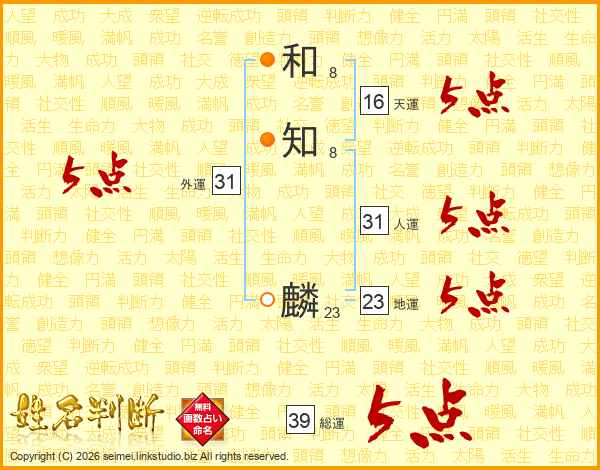 和知麟さんの総運は39画の5点!