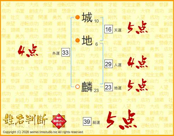 城地麟さんの総運は39画の5点!
