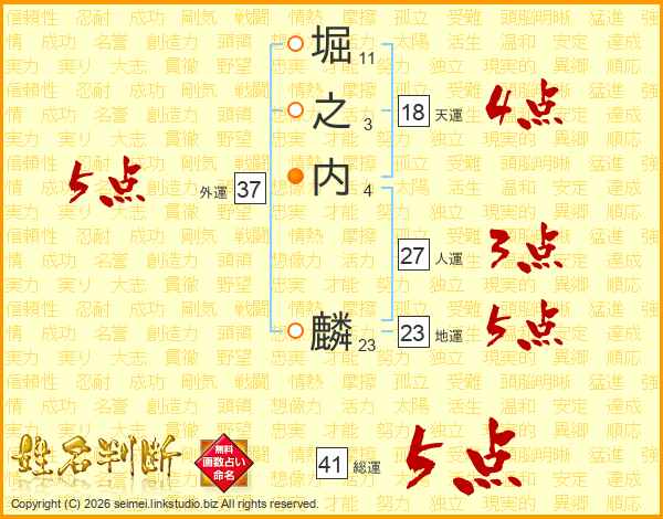 堀之内麟さんの総運は41画の5点!
