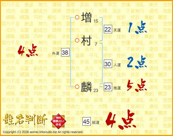 増村麟さんの総運は45画の4点!