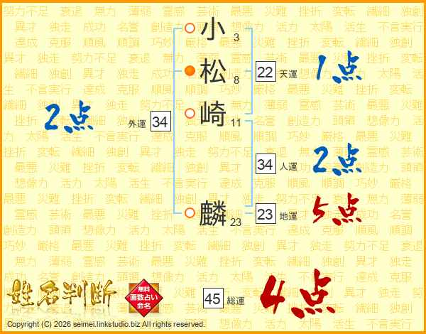 小松崎麟さんの総運は45画の4点!