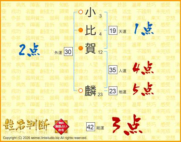 小比賀麟さんの総運は42画の3点!