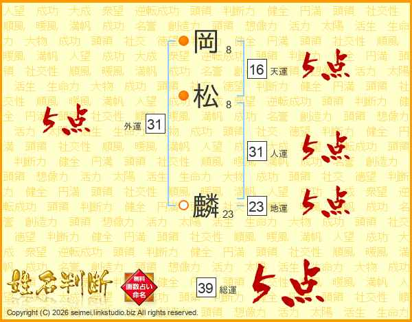 岡松麟さんの総運は39画の5点!