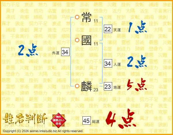 常國麟さんの総運は45画の4点!
