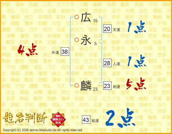 広永麟さんの総運は43画の2点!