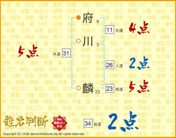 府川麟さんの総運は34画の2点!