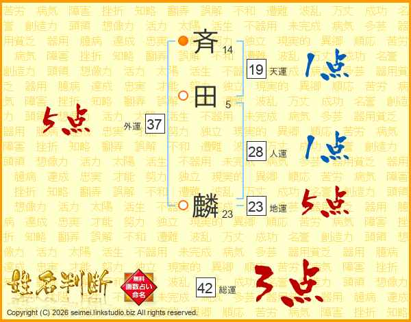 斉田麟さんの外運は37画の5点!