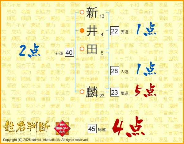 新井田麟さんの総運は45画の4点!