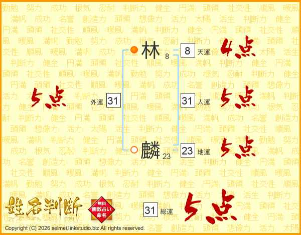 林麟さんの総運は31画の5点!