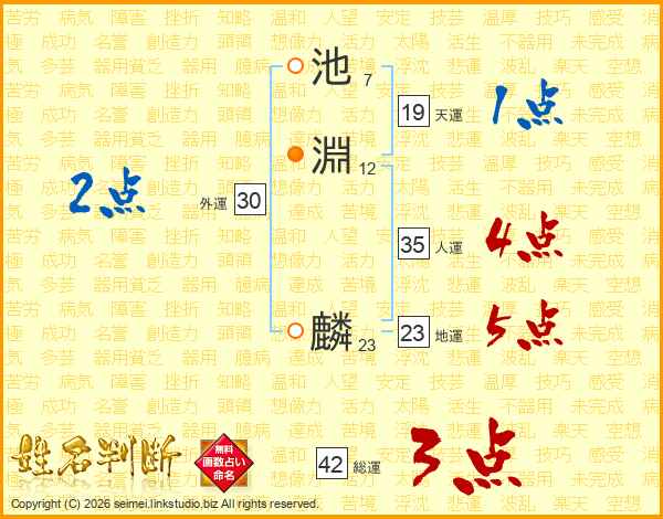 池淵麟さんの人運は35画の4点!