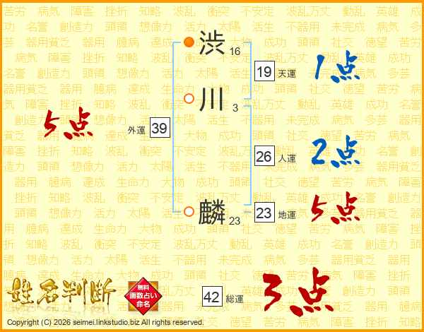 渋川麟さんの総運は42画の3点!