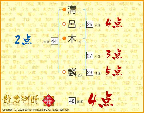 溝(14画)呂(7画)木(4画) 麟(23画)