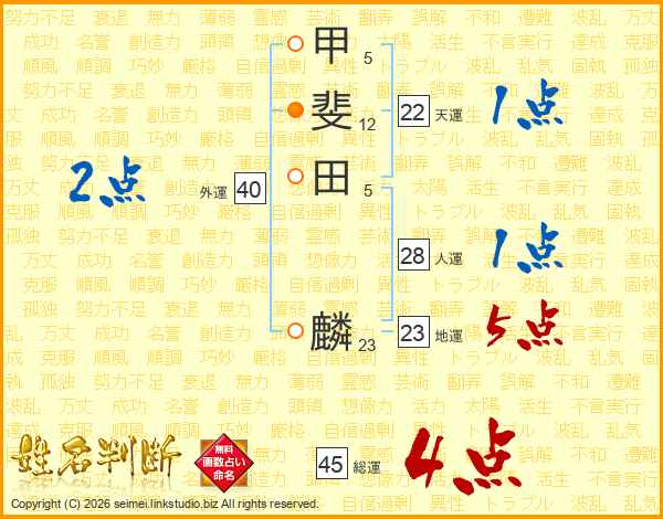 甲斐田麟さんの総運は45画の4点!