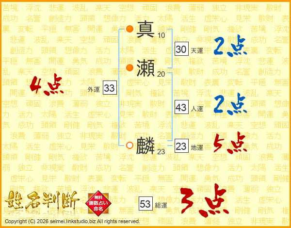 真瀬麟さんの総運は53画の3点!