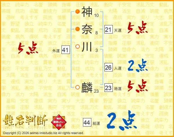 神奈川麟さんの人運は26画の2点!