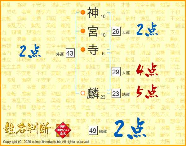 神宮寺麟さんの外運は43画の2点!