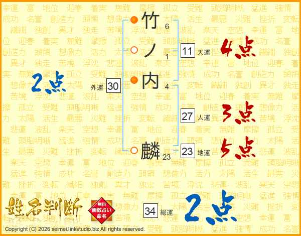 竹ノ内麟さんの総運は34画の2点!