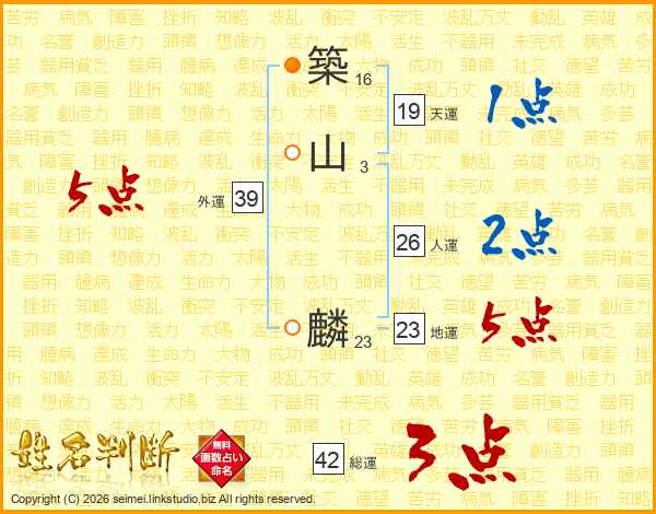 築山麟さんの外運は39画の5点!