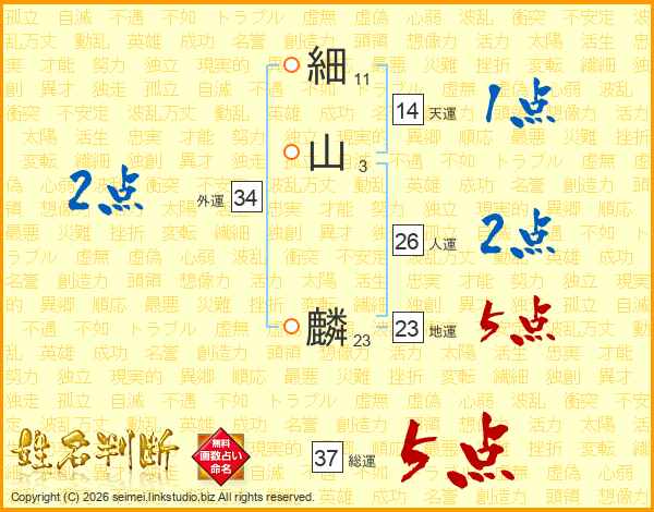 細山麟さんの総運は37画の5点!
