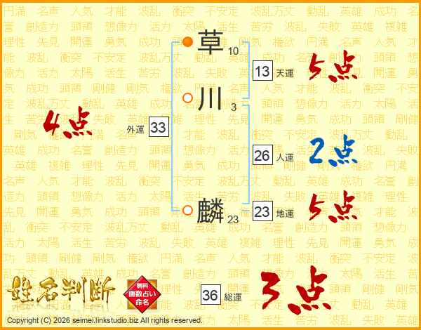 草川麟さんの天運は13画の5点!