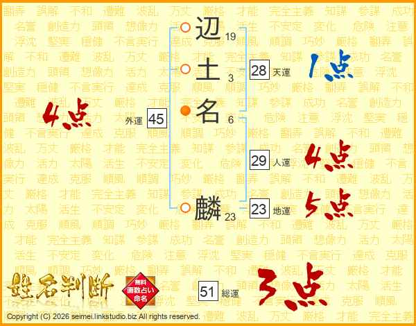 辺(19画)土(3画)名(6画) 麟(23画)