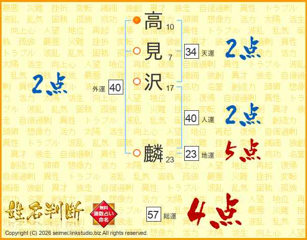 高見沢麟さんの総運は57画の4点!