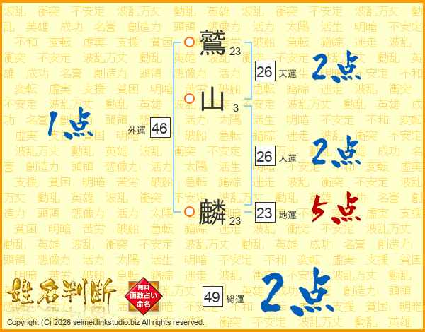 鷲山麟さんの総運は49画の2点!