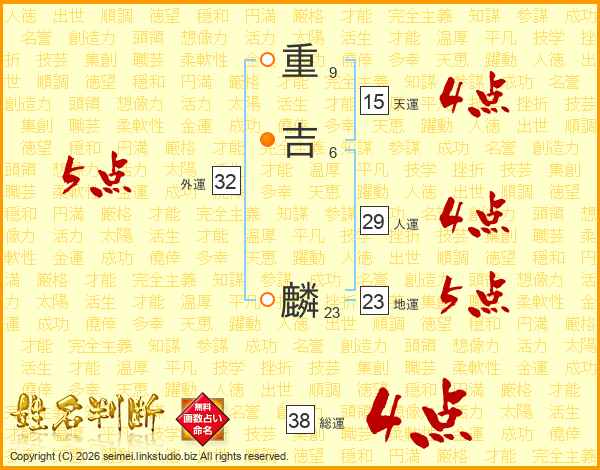 重吉麟さんの総運は38画の4点!