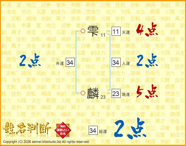雫麟さんの総運は34画の2点!