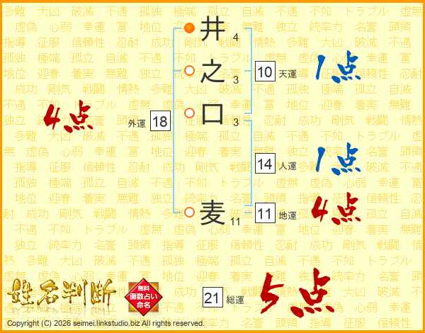 井之口麦さんの総運は21画の5点!