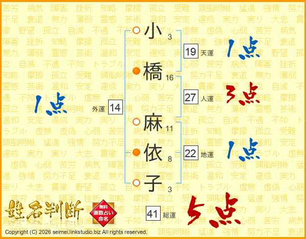 小橋麻依子さんの総運は41画の5点!