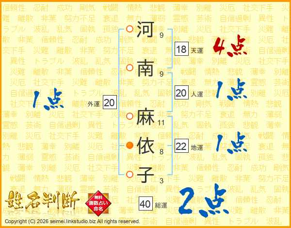 河南麻依子さんの人運は20画の1点!