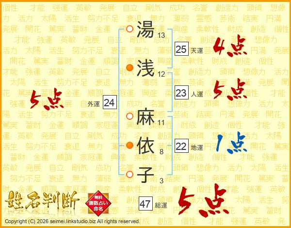 湯浅麻依子さんの総運は47画の5点!