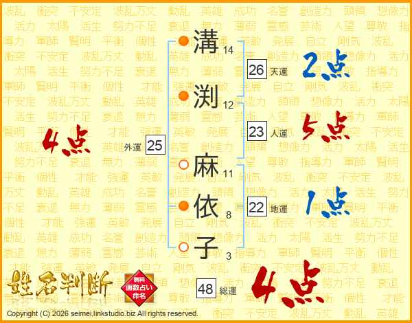 溝渕麻依子さんの総運は48画の4点!