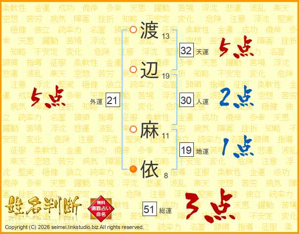 渡辺麻依さんの総運は51画の3点!