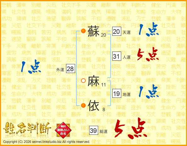 蘇麻依さんの総運は39画の5点!