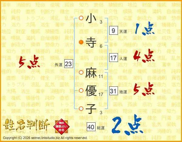 小寺麻優子さんの総運は40画の2点!