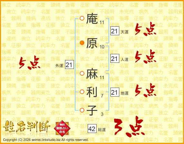 庵原麻利子さんの天運は21画の5点!